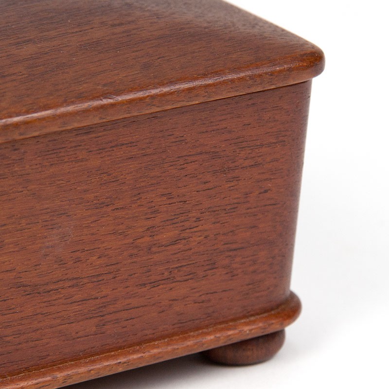 Vintage small storage box, period 1960-1969. Beautiful model on small round feet. Made of teak. The condition is good, see details. The dimensions are 15.5 cm long, 10.5 cm wide, and 8 cm high.