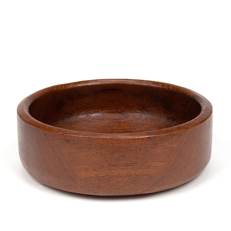Small serving dish. Dating from the period 1960-1969, Denmark. Made of teak wood. The condition is good, with light signs of use, see details. The dimensions are 15.5 cm in diameter and 5 cm high.