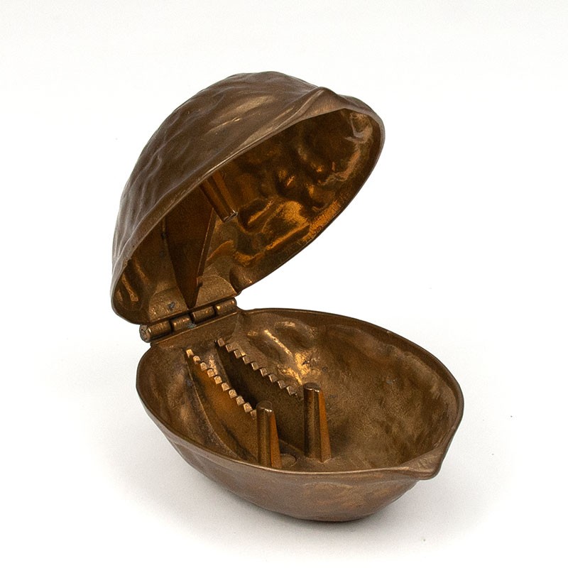 Mid-Century nutcracker from the period 1955-1969 in brass. Beautiful decorative item, shaped like a walnut. The condition is good, see details. The dimensions are 12.5 cm long, 9 cm wide, and 7.5 cm high.