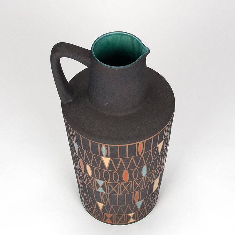 Rare stylish Mid-Century vase, large model, 50 cm high. The vase is made of earthenware and has a matte finish with colored sections. Dating from the period 1959-1969. The condition is good, undamaged. The dimensions are 50 cm high and 24.5 cm in diameter.
