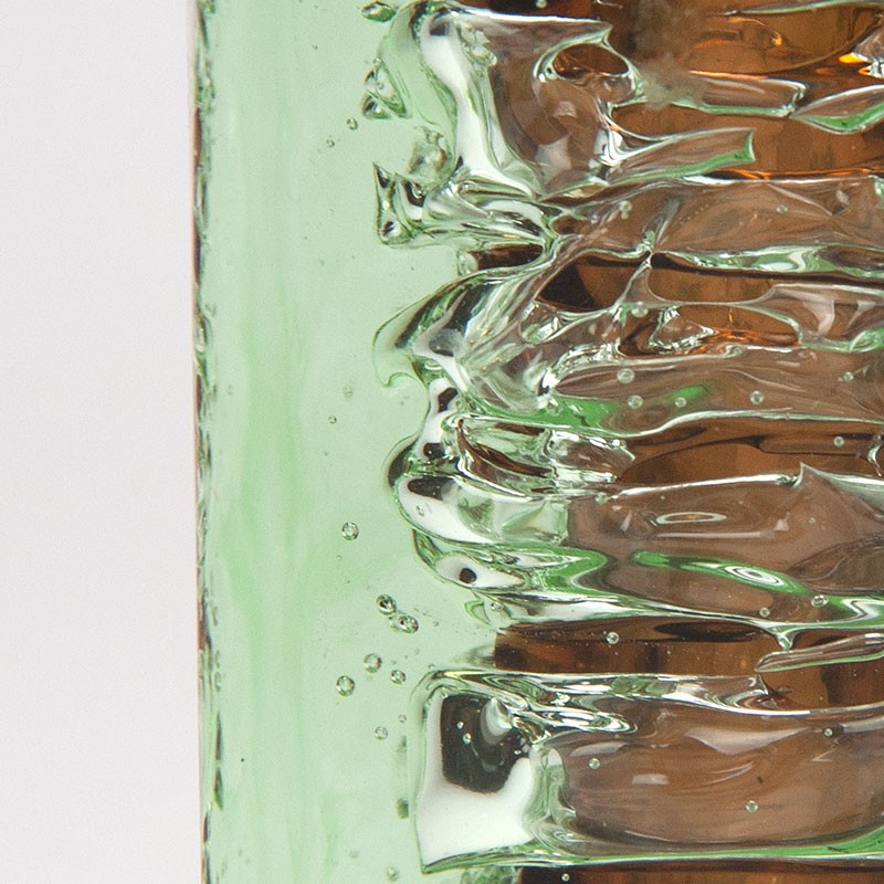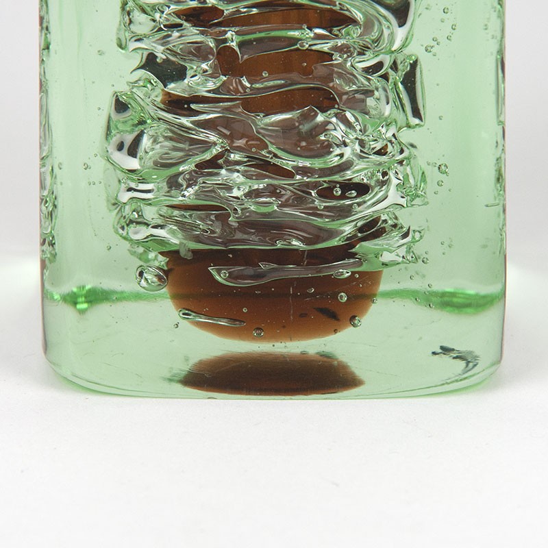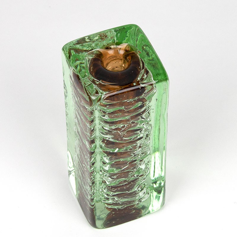 Solifleur by the Czech glass artist Frantisek Vizner for Skrdlovice. Beautiful vintage vase in green and brown. The vase is known as the Whirlpool. The condition is good, undamaged. The dimensions are 7 cm wide and 18 cm high.