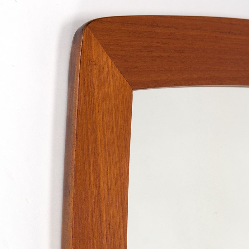 Modern Mid-Century vintage mirror from the period 1960-1969. Quite large model with a wide teak frame. Made in Denmark. The condition is reasonably good, with a few light scratches in the glass. The dimensions are 53.5 cm wide and 105 cm high.