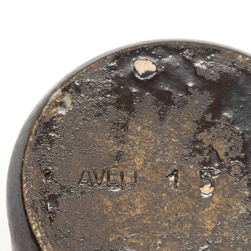 Ceramic vase from the Dutch brand Ravelli. Jaap Ravelli was the artist and this vase is from the period 1960-1969. The vintage vase is numbered 159. The condition is good, undamaged, see details. The dimensions are 13 cm high and 8 cm in diameter.