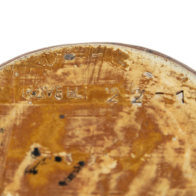 Dutch earthenware vase from the Ravelli brand. Beautiful model in a spotted aubergine color. Marked: Ravelli 22-1. The condition is good, undamaged, see details. The dimensions are 11 cm in diameter and 23.3 cm high.