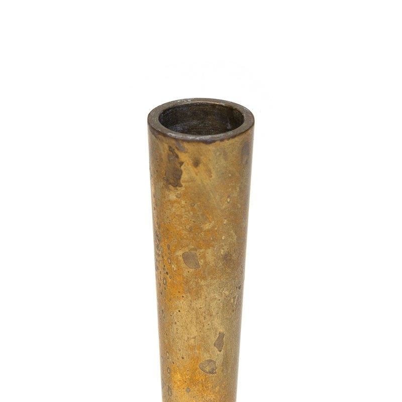 Brass vintage candlestick from the fifties / sixties. Nicely designed in one piece. The condition is good, not polished with copper polish so that the old shine is present, see details. The dimensions are 5 cm in diameter and 20.5 cm high.
