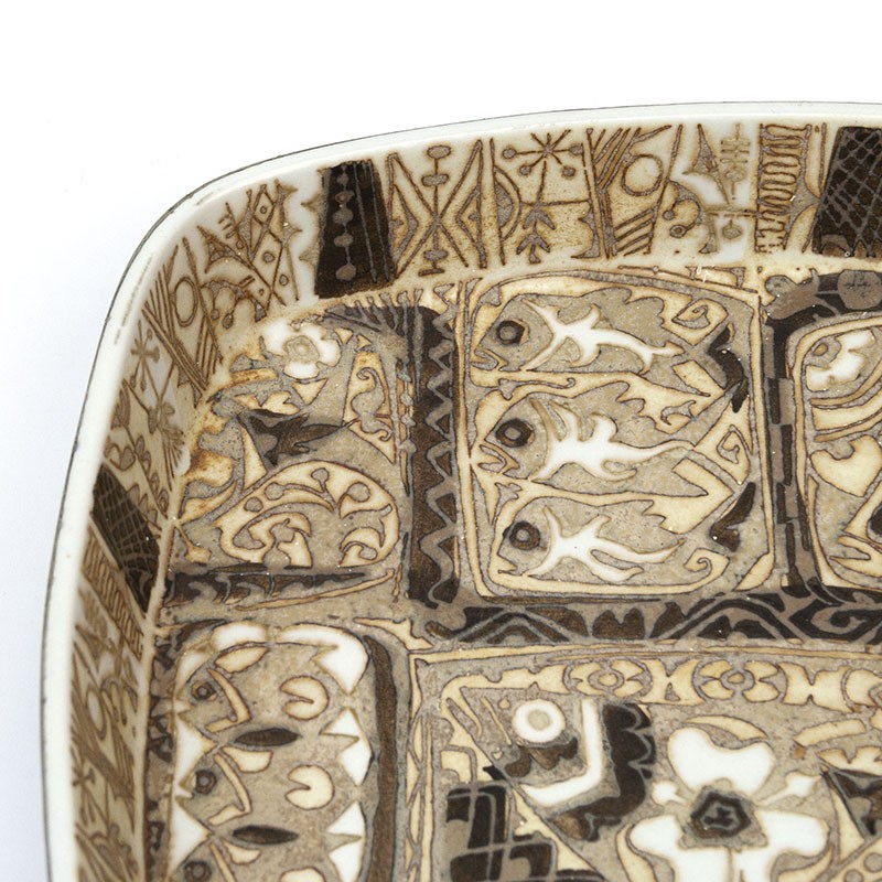 Danish design bowl from Royal Copenhagen. Design by Nils Thorsson, late 1960s, as part of the Baca Aluminum series. The condition is good, undamaged, the details. The dimensions are 22 cm wide and 4 cm high.