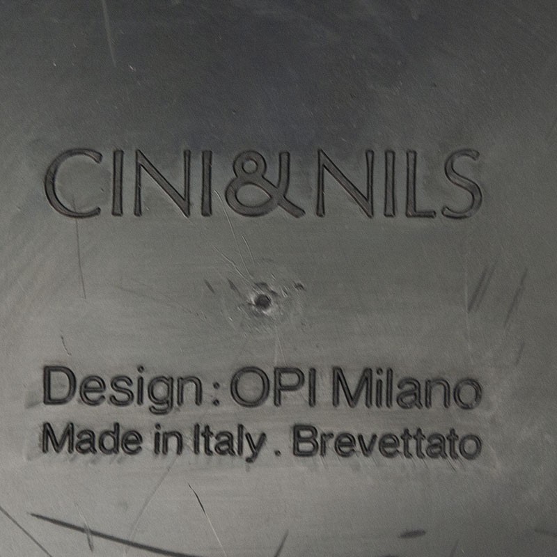 Italian vintage design magazine rack from the brand Cini & Nils. Marked on the bottom Opi Milano, made in Italy by Brevettato. The newspaper tray is rotatable and is made of transparent gray plastic. The condition is good considering the age, some light scratches, see details. The size is 31 cm high and 30 cm in diameter.