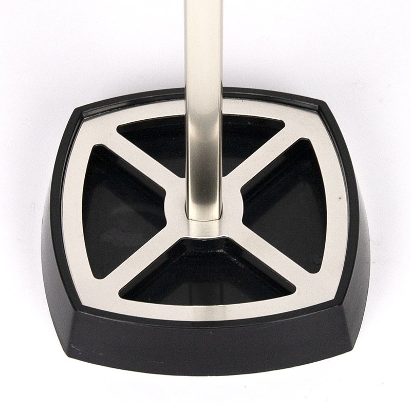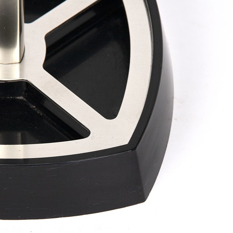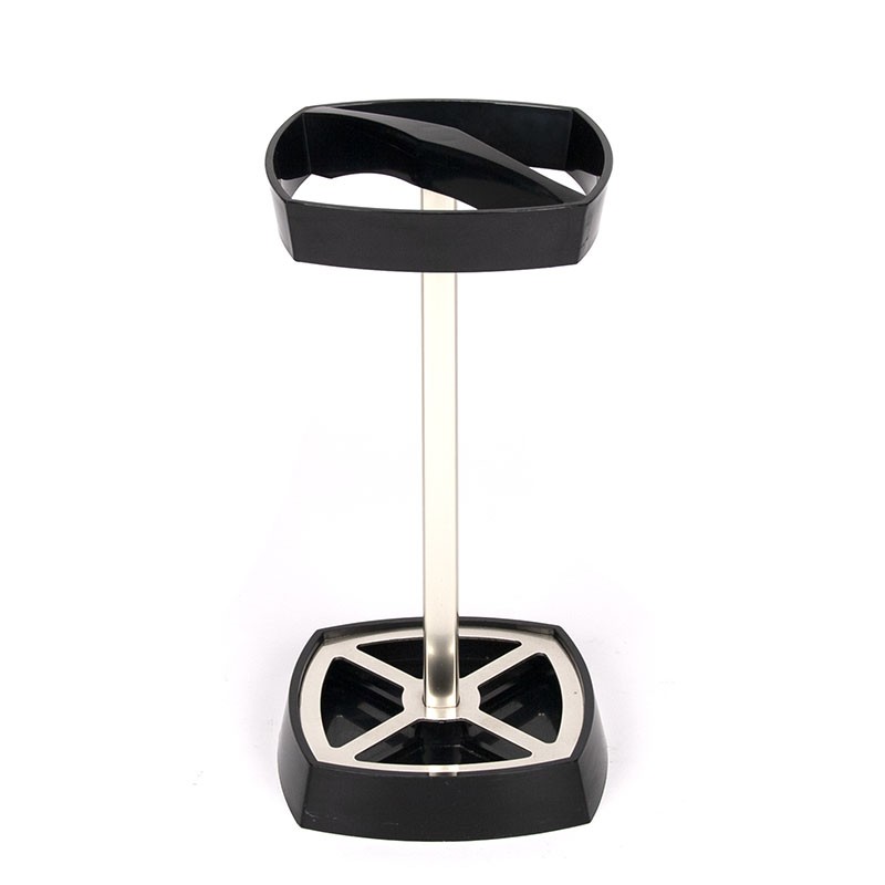 Vintage umbrella stand from the seventies. Black plastic with brushed aluminum. The condition is good, minimal traces of use appropriate to the age, see details. The dimensions are 21 cm wide and 41 cm high.