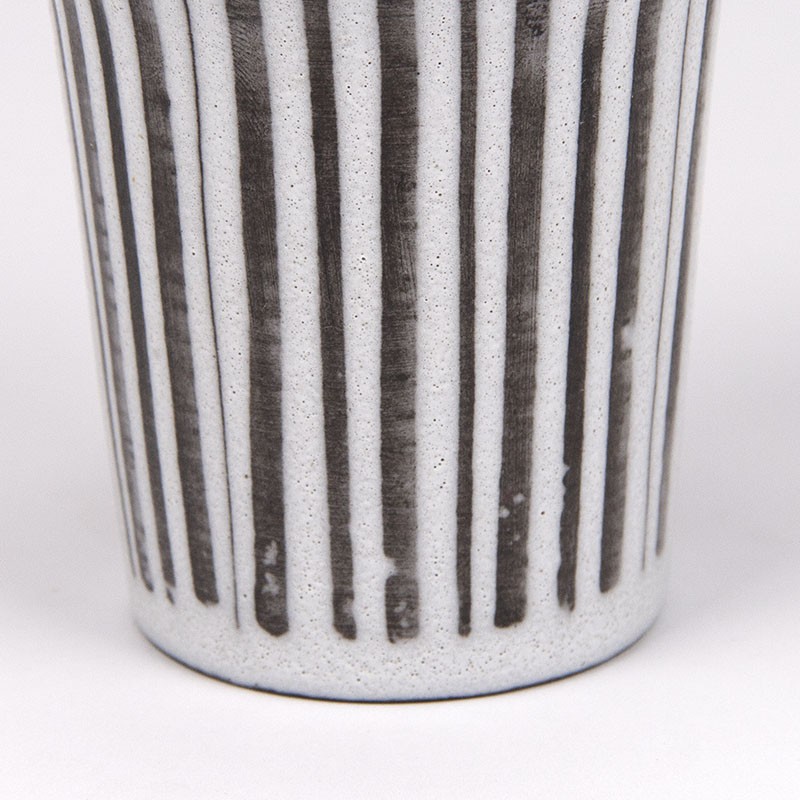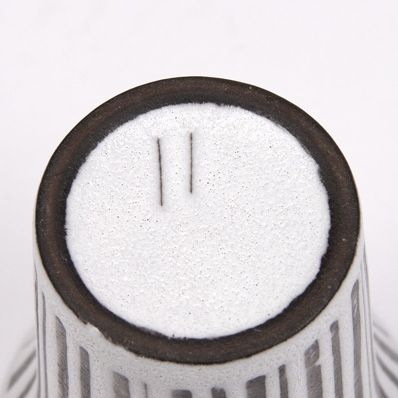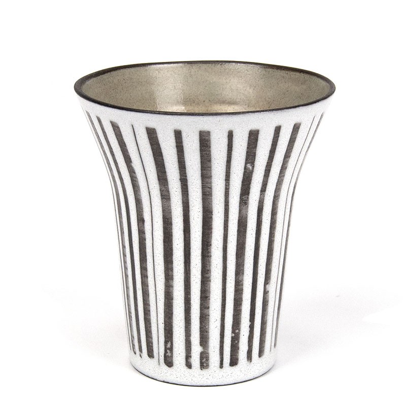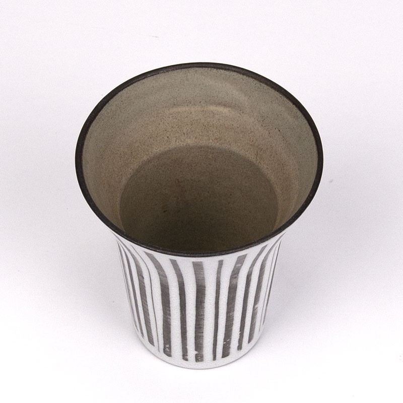 Flower pot and/or vase from the fifties, sixties. Nice stylish design. Marked on the bottom, unknown to us. The condition is good, undamaged, see details. The dimensions are 11.5 cm high and 10.2 cm in diameter.