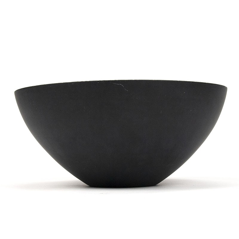 Danish vintage Krenit design bowl. Designed by Herbert Krenchel for Torben Ørskov, Denmark in the 1960s. The bowl is enamel and has an orange glossy interior and is matte black on the outside. The condition is good considering the age, minimal traces of use, see the detailed photos. The dimensions are 25 cm in diameter and 11 cm high.