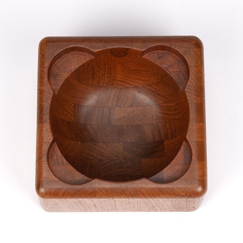 Special thick-walled teak bowl from the sixties. Beautiful model of the brand Digsmed from Denmark. The condition is good, see details. The dimensions are 18 cm wide and long and 10 cm high.