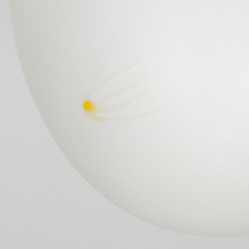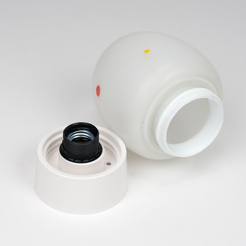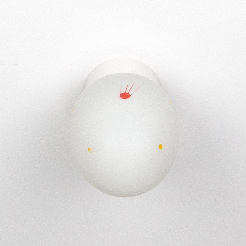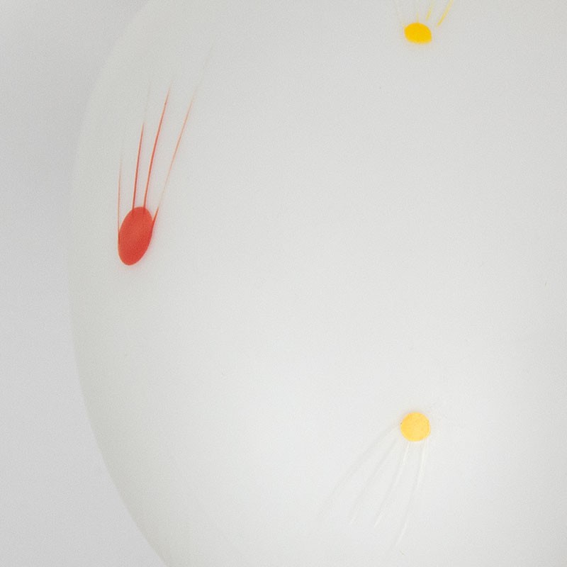 Vintage ceiling lamp from the fifties. Nice decoration in yellow and orange/red. The condition is good, no snips the ceiling part with fitting has been replaced by a new part. The dimensions are 13 cm in diameter and 20.5 cm high.