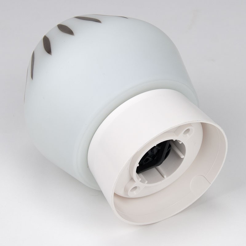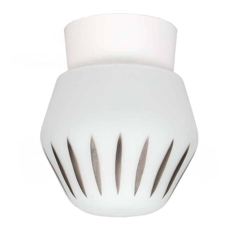 Milk glass ceiling light from 1950-1965. Beautifully decorated. Vintage example with new ceiling fixture. The condition is good, the glass is in good condition. The dimensions are 14 cm in diameter and 18.5 cm high.