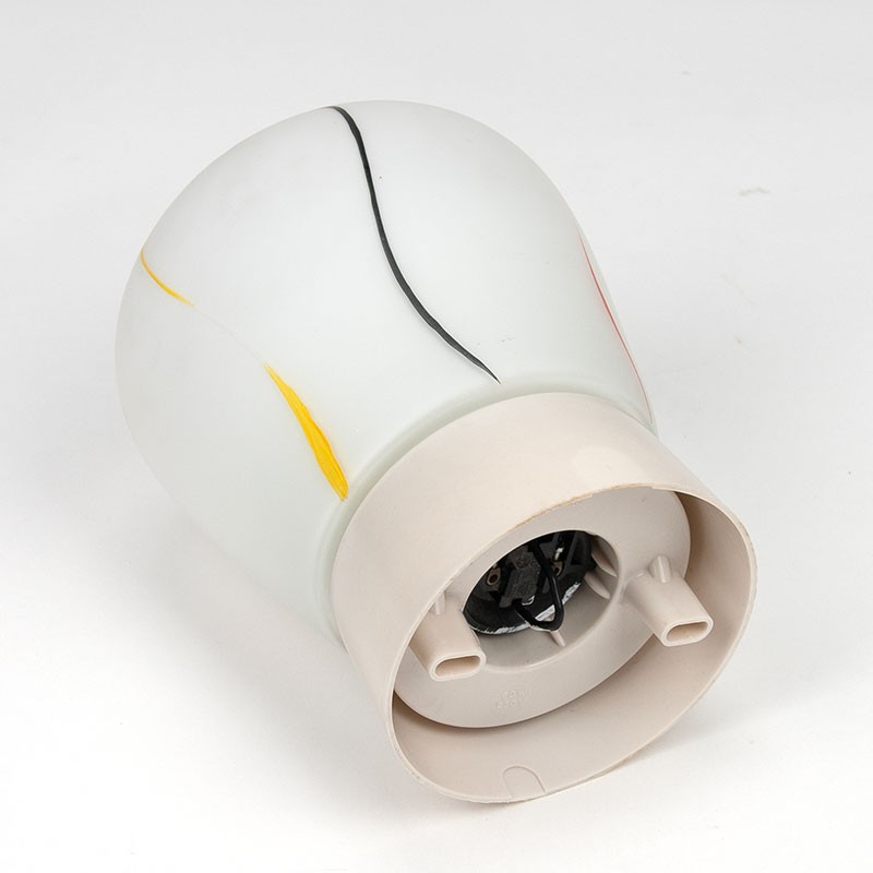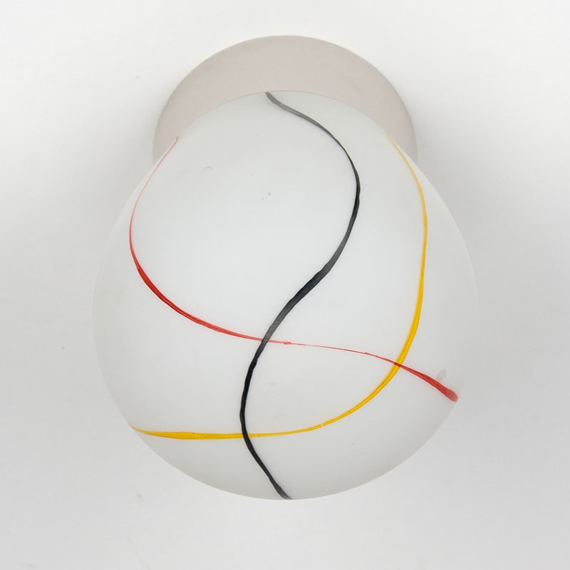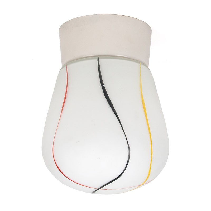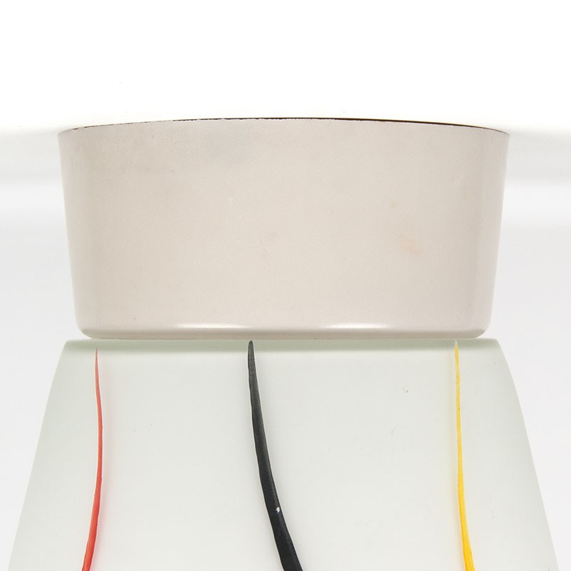 Vintage ceiling light from the 1950s. Beautifully decorated with colorful stripes. It's in good, undamaged condition; see details. It measures 12.5 cm in diameter and 19 cm high.