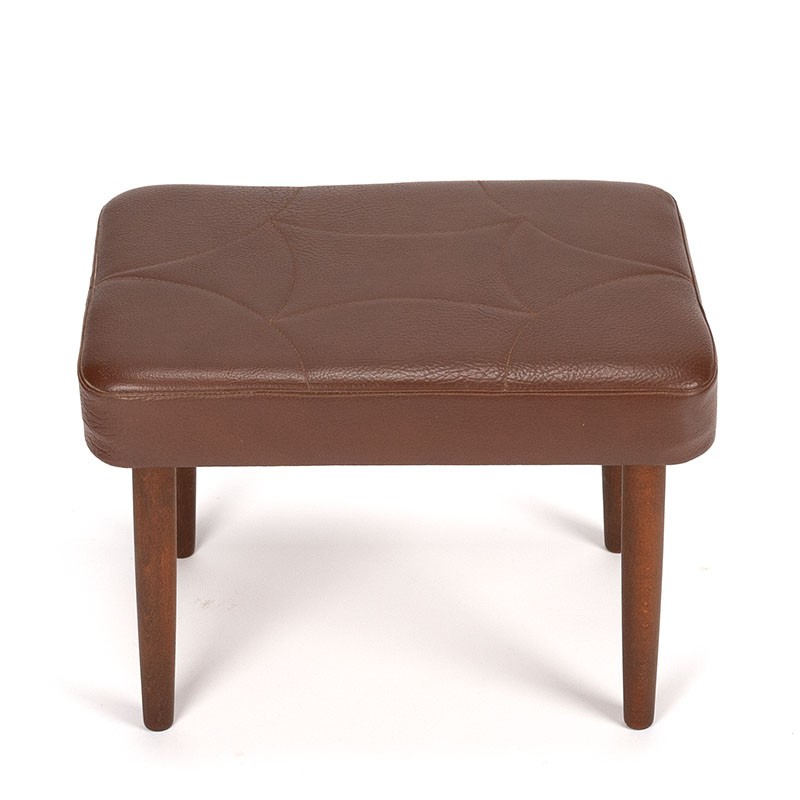 Danish vintage ottoman from the sixties. Nice piece in brown leatherette with a special stitching pattern. The condition is good considering the age, minimal traces of use, see details. The dimensions are 49.5 cm long, 35 cm deep and 36.5 cm high.