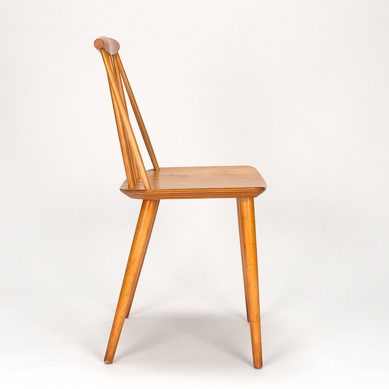 Danish vintage FDB chair designed by Folke Pålsson, model J77. The chair is an early model and is marked. It is in good condition, with minor signs of wear consistent with its age. The dimensions are 44.5 cm seat height, 43 cm width, and 78 cm height.