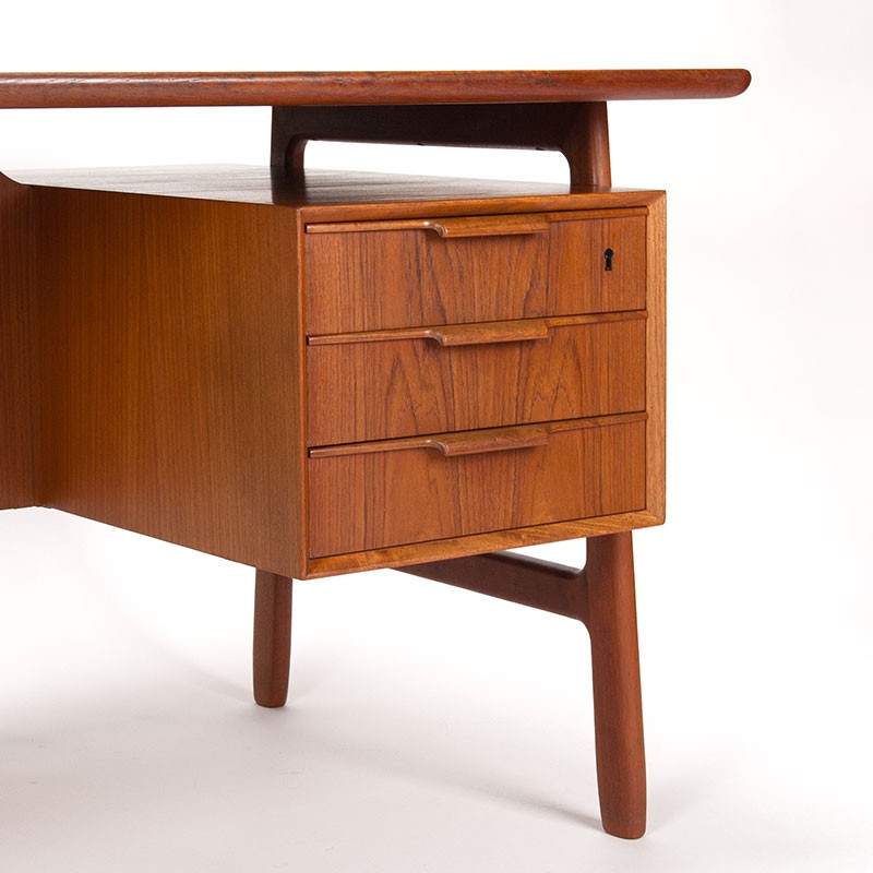 Large designer desk from the mid-century period, Denmark. Designed by Gunni Omann in the mid-1960s for Omann Jun's Møbelfabrik. This vintage desk, model number 75, is made of teak. It's a beautiful, solid desk with ample workspace. Considering its age, it's in good condition with only minimal signs of wear, see details. The dimensions are 154 cm L / 81 cm D / 73 cm H.