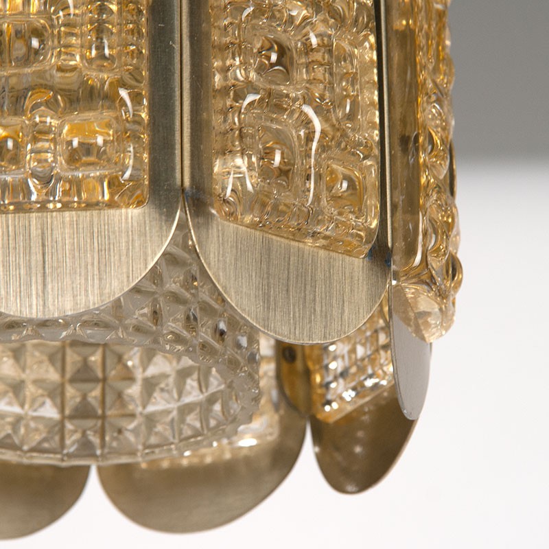 Danish pendant lamp from the period 1950-1969 by Vitrika. Beautiful model with brass fixture combined with glass from the Orrefors glass factory. The lamp hangs on the original chain. The condition is good, see details. The dimensions are 18.5 cm in diameter and 20.5 cm high.