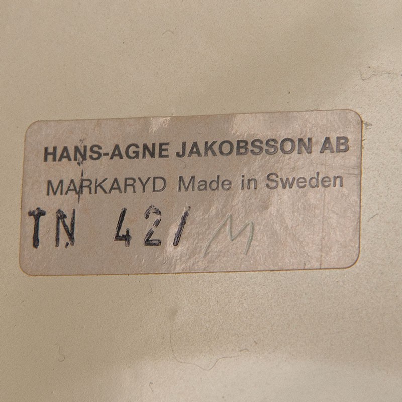 Swedish vintage design pendant lamp from 1973, model number TN 42/M. Designed by Tortsen Orrling and produced by Hans Agne Jacobsen A/B Markaryd. Brass, complete with original ceiling rose. The lamp is marked. It is in good condition, with a beautiful patina and some minor blemishes; see details. The dimensions are 42 cm in diameter and 32.5 cm high.