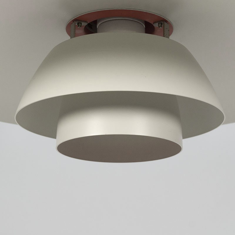 Vintage PH 4/3 pendant lamp, designed in 1958 by Danish designer Poul Henningsen and released by Louis Poulsen. An original classic from the mid-century period. The lamp is white, with an orange center. This example dates from 1960-1969 and does not include a diffuser. It is in good condition, with no dents or scratches; see details. It measures 40 cm in diameter and 20 cm high.