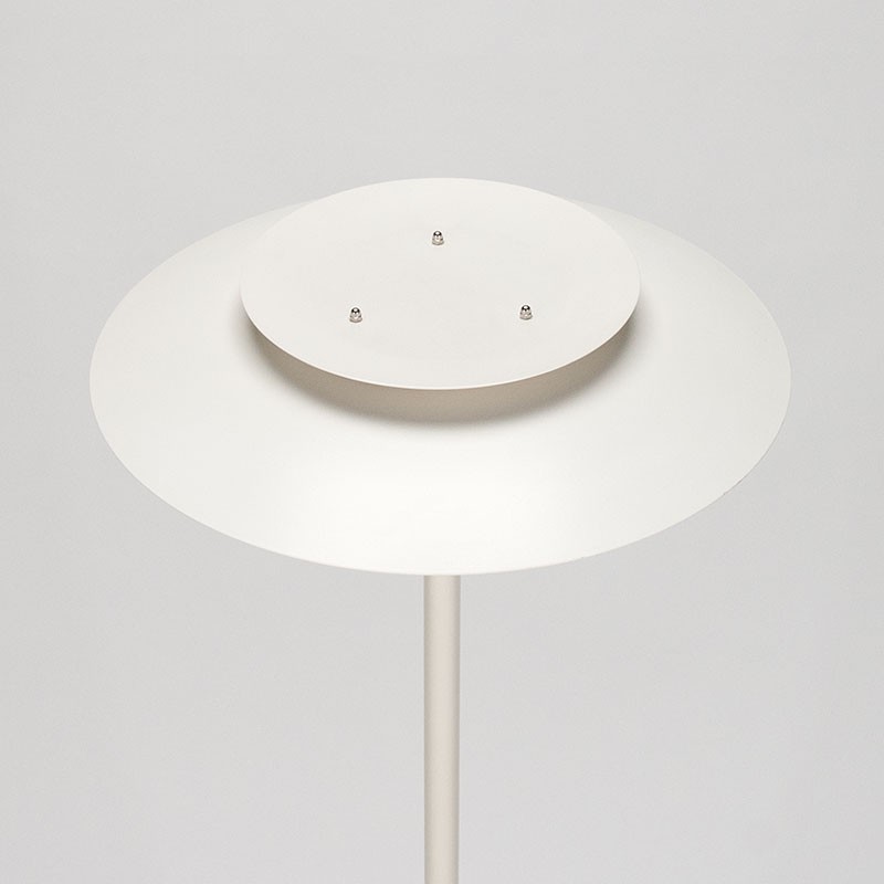 Danish vintage floor lamp designed by Simon P. Henningsen (son of Poul Henningsen). Beautiful, stylish design in typical Danish style. The condition is good, no dents, see details. The dimensions are 45 cm in diameter and 130 cm high.