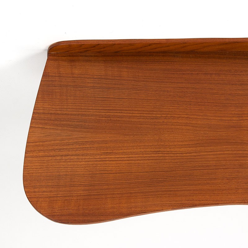 Organically shaped wall shelf from the late fifties, Denmark. Beautiful model with an open space. Very suitable to place a mirror above. The condition is good, only very minimal traces of use, see details. The dimensions are 70 cm wide, 31 cm deep and 19.5 cm high (wall part).
