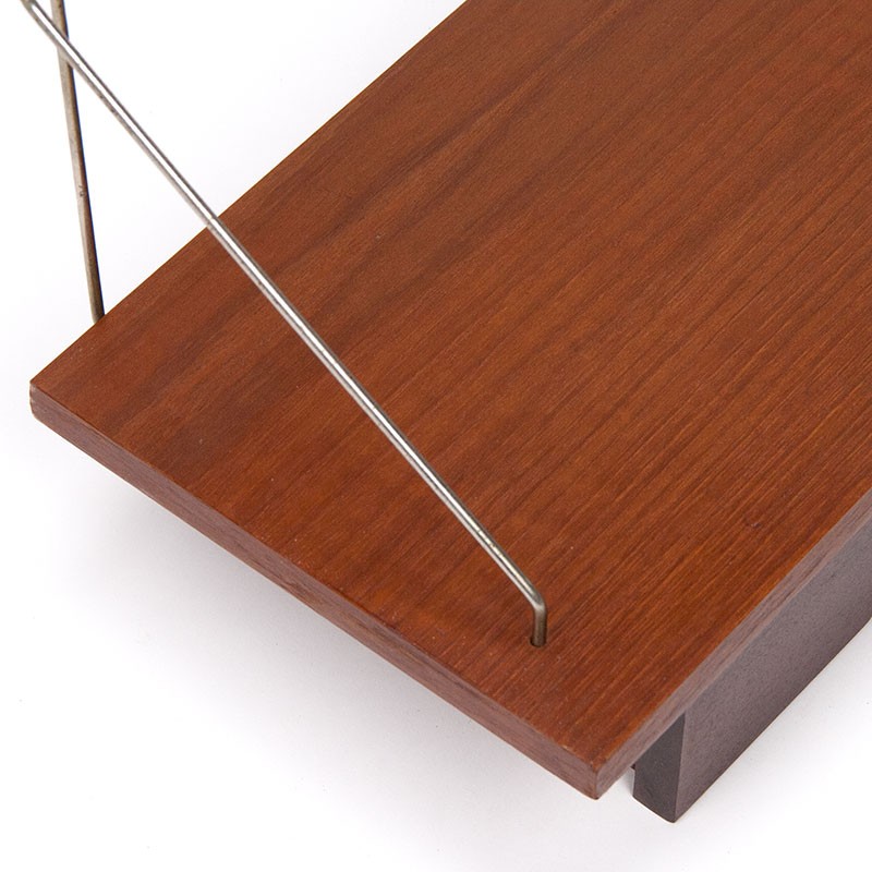 Danish floating wall drawer. From the period 1960-1969. Made of teak with metal brackets. The condition is good, with only minor signs of wear consistent with its age. The dimensions are 40 cm wide, 21 cm deep, and 9 and 27 cm high.