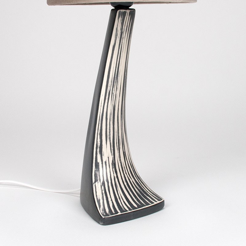 Special table lamp from the late fifties, early sixties, Denmark. The vintage lamp has a beautiful design. Marked in the base Horn 423. The condition is good, wiring and hood have been replaced, the ceramic is undamaged. The dimensions are 44.5 cm high and 20 cm in diameter, the base alone is 28.5 cm high to the socket.