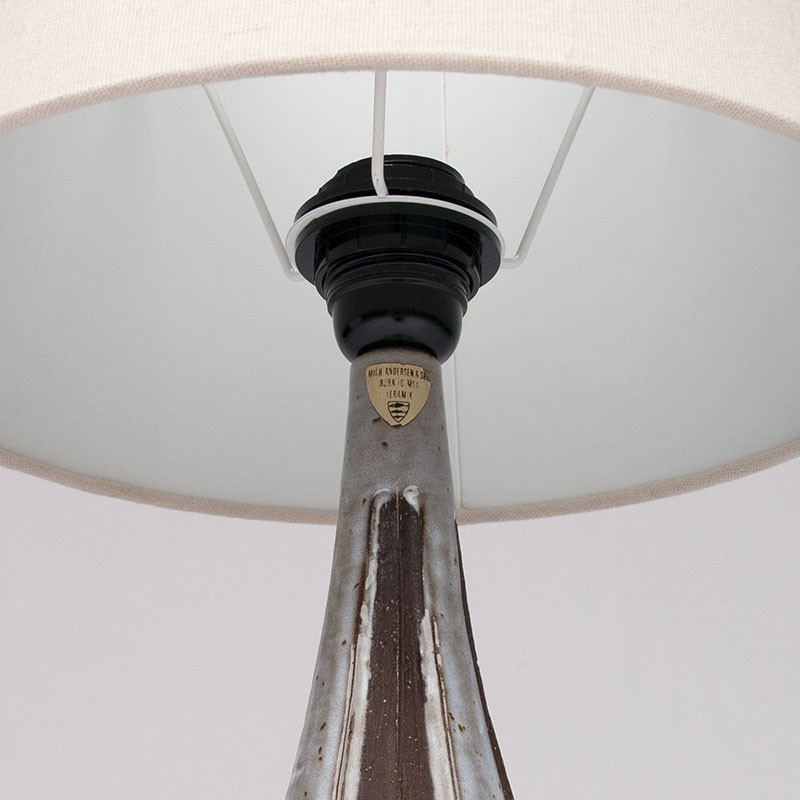 Danish design table lamp by Michael Andersen & Son, model number 6342. Beautiful earthenware base, marked. The fitting has been replaced for a new one. The condition is good, wiring replaced, see details. The dimensions are 47 cm high, the base is 31 cm high and 15.5 cm in diameter.
