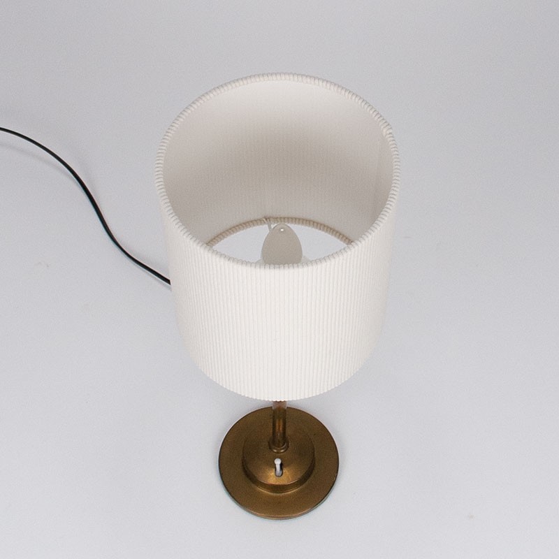 Exceptionally rare table lamp by Zeiss Ikon (marked in the brass). Most probably a design by Adolf Meyer from the 1930s. The switch and the mark are nice details. The condition is good considering its age; the shade and wiring have been replaced. The dimensions are 50 cm high including the shade, 30 cm excluding the shade, and the base is 12.5 cm in diameter.
