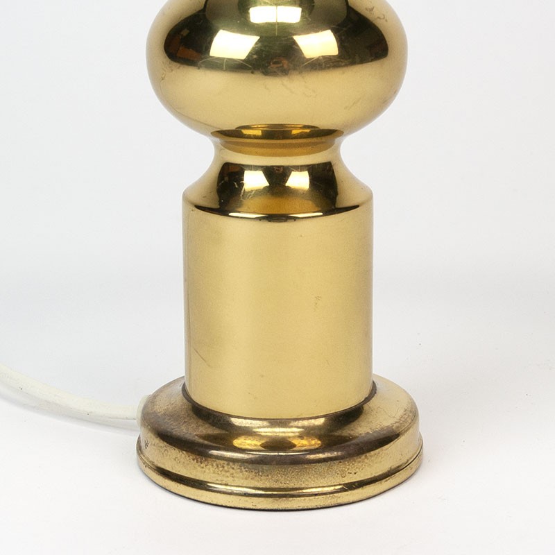 Vintage table lamp with brass colored base and black velor shade (shade is new). The condition is good, wiring has been replaced, see details. The dimensions are 44.5 cm high, the shade is 25 cm in diameter, the foot is 9 cm.