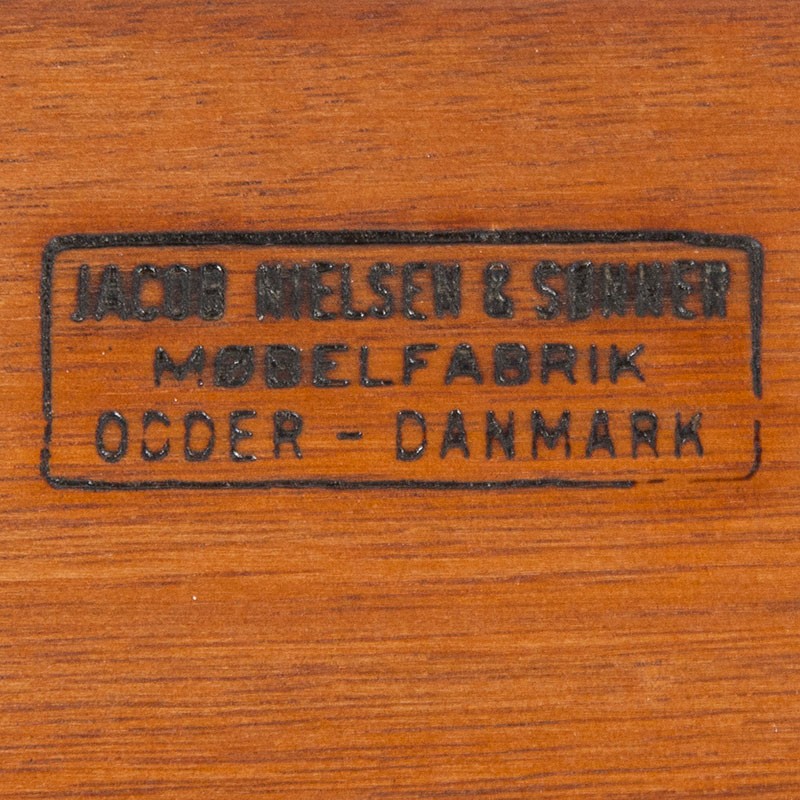 Danish design coffee table from the mid-1960s, made of teak. Beautiful design from Jacob Nielsen & Sønner Møbelfabrik in Odder, Denmark. The coffee table is marked. It is in good condition, with only very minimal signs of wear; see details. The dimensions are 173.5 cm long, 59.5 cm wide, and 49 cm high.