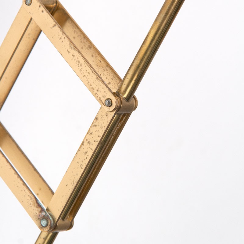 Concertina lamp from the fifties/sixties, Denmark (marked). Beautiful vintage piece in brass version with a pleated shade. The condition is good, brass has light spots of oxidation (appropriate to the age), see details. The dimensions are retracted 20 cm deep and maximum 75 cm long, the hood has a diameter of 27.5 cm.