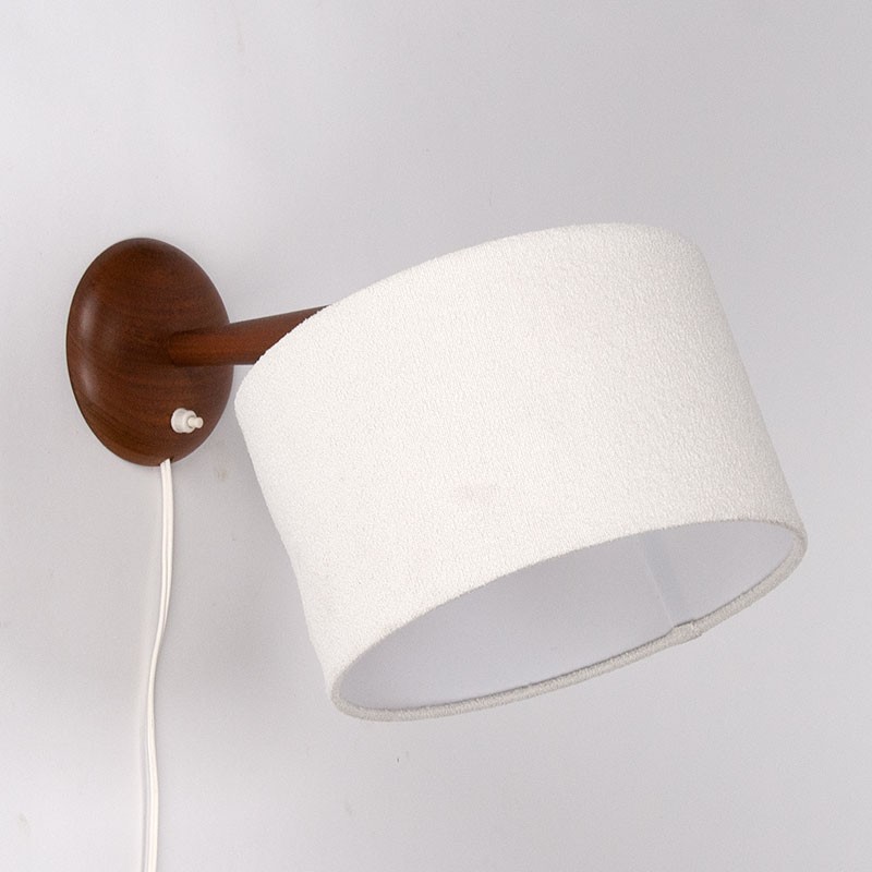 Teak wall lamp from 1950-1959. Beautiful vintage model with an adjustable shade for more focused light. The wiring has been replaced. It is in good condition; see details. The maximum length is 39 cm, and the shade is 25 cm in diameter.