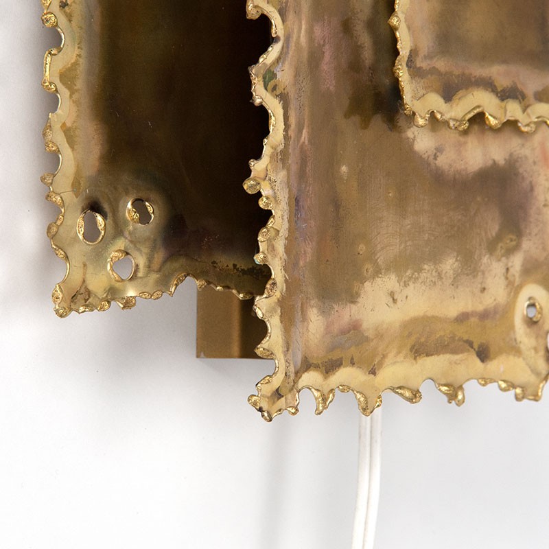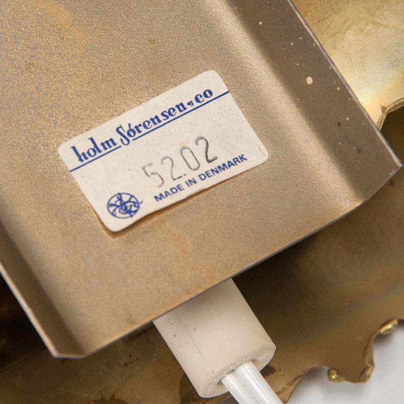 Vintage set of two wall lamps designed by Svend Aage Holm Sørensen. Model 5202, made of brass. The set is marked. The condition is good; the wiring has been checked. The dimensions are 20.5 cm wide, 5.5 cm deep, and 21 cm high.