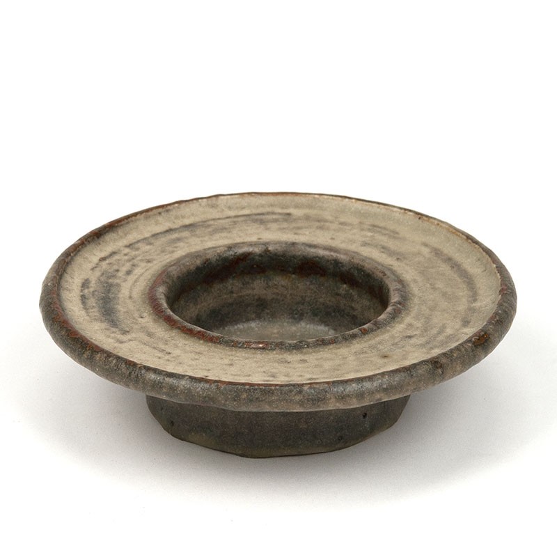 Nederlands aardewerken waxinelichthouder van Mobach, Utrecht. Het vintage houdertje is aan de onderzijde gemerkt. De conditie is goed, onbeschadigd, zie details. De afmetingen zijn 14 cm in diameter en 4 cm hoog.