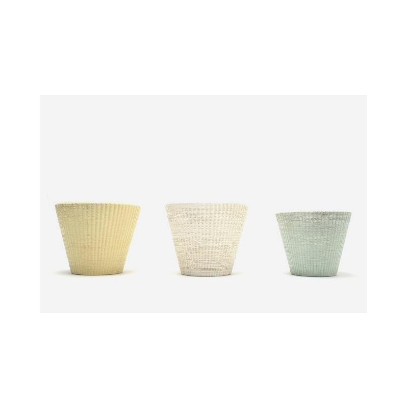 Set van 3 aardewerk bloempotten van het Nederlandse merk ADCO uit de begin jaren 60. De bleompotten verkeren in een goede, onbeschadigde staat. De afmetingen zijn 9 cm hoog en 11 cm in doorsnee ( groene), 10 cm hoog en 12,5 cm in doorsnee ( witte en gele).
