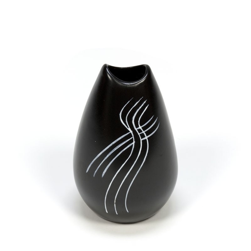 Vintage vaasje, klein model, van aardewerk uit de vijftiger jaren. Mooi decoratief model, afkomstig uit de Plateelbakkerij Zuid-Holland, Plazuid. De conditie is goed gezien de leeftijd, geen beschadigingen, zie de details. De afmeting is 14 cm hoog.