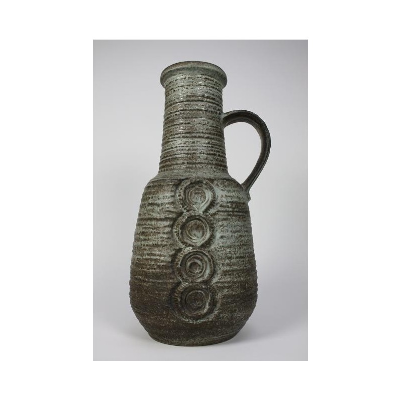 Mooie grote aardewerken vaas uit de 1970's. De vaas heeft een groenige kleur en een mooie vorm. De vaas is niet te gebruiken met water, er zit aan de onderzijde een rond gat (dit is origineel). De vaas verkeert in een onbeschadigde staat. De hoogte is 55 cm.