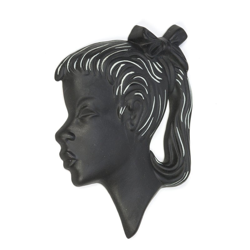 Vintage silhouetje van het gezicht van een meisje. Gemaakt in de periode 1955-1965. Gemerkt aan de achterzijde met Kroon 308. De conditie is goed, onbeschadigd, zie de details. De afmetingen zijn 16,5 cm hoog en 13 cm breed.