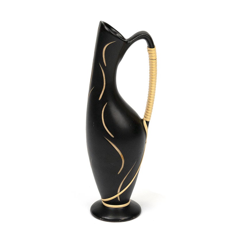 Keramiek vaasje uit de vijftiger jaren, Denemarken. Mooi vintage slank vormgegeven vaasje/ kannetje. De conditie is goed, onbeschadigd, zie details. De afmetingen zijn 19,2 cm hoog, 7 cm breed en 5 cm in diameter.