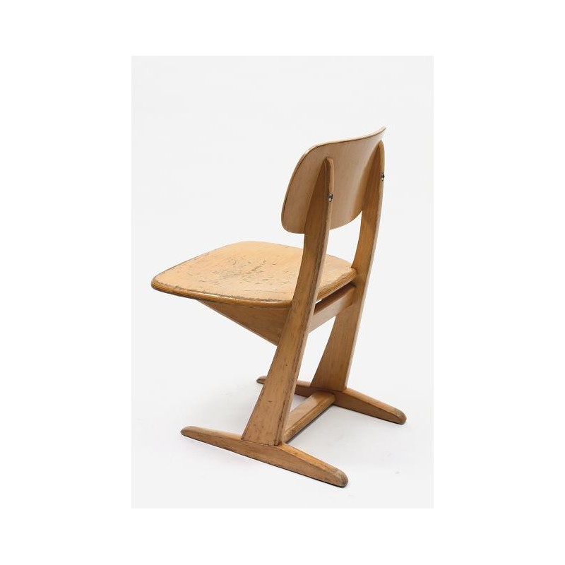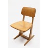 Set van 2 vintage kinderstoeltjes uitgevoerd in blank hout. De stoeltjes verkeren in een redelijke, maar gebruikte staat ( zie detailfoto's). De afmeting is 60 cm hoog, 33 cm zithoogte en 34,5 cm breed.