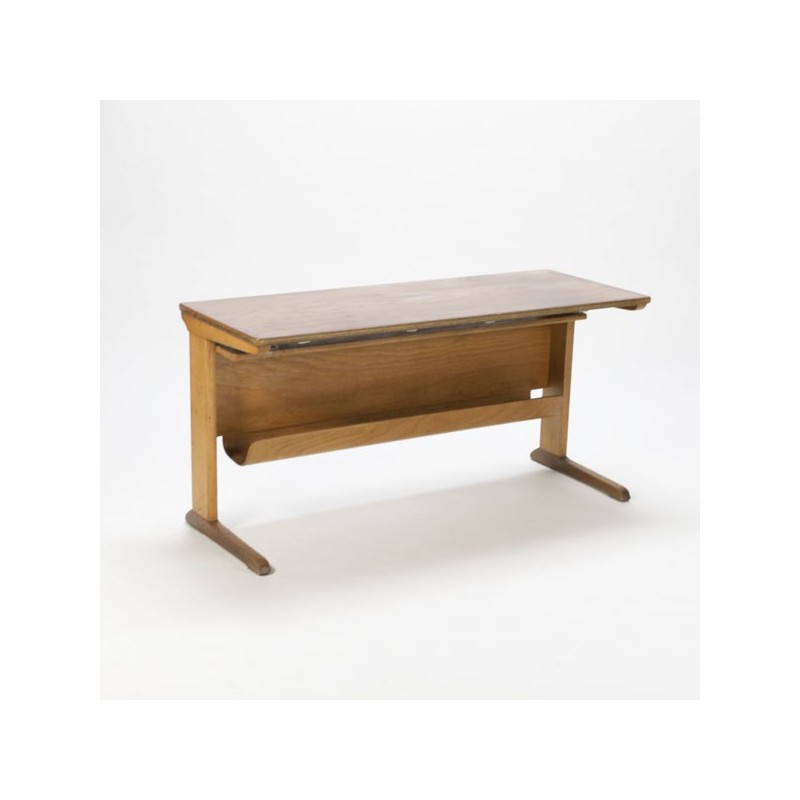 Vintage bureau voor kinderen uitgevoerd door Casala. Het bureau heeft een mooi detail, een plywood opbergruimte/ bak onder het bureau. De conditie is redelijk goed gezien de leeftijd, zie ook de detialfoto's. De afmeting is 130 cm L/ 50 cm B/ 64 cm H.