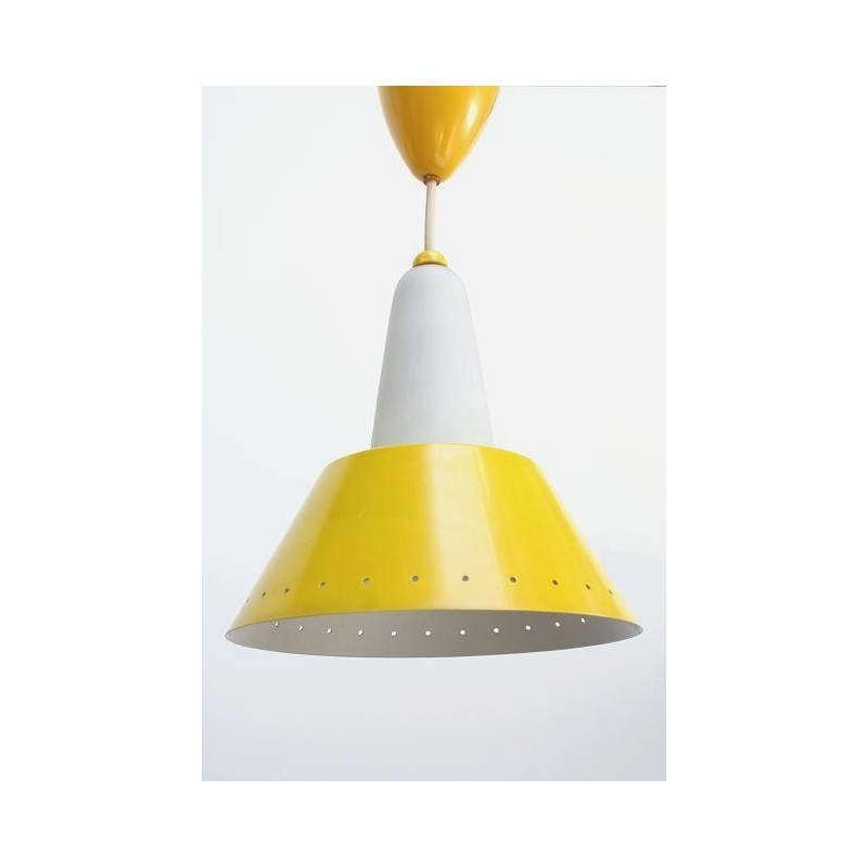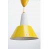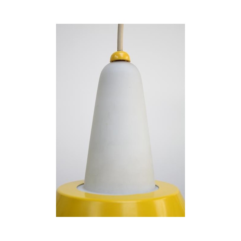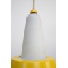 Mooie kleine hanglamp van het merk Philips. De lamp bestaat uit een glazen kelk met daar overheen een geel metalen kap. In de