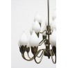 Zeldzame grote lamp van Fog&Morup. Tulpen of Tulp lamp genoemd vanwege de glazen kelken in de vorm van een tulp. De lamp heeft een koperkleurig
