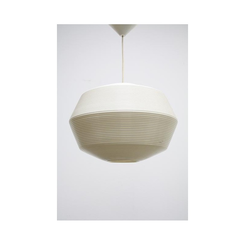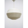 Vintage hanglamp uit de zestiger jaren. De lamp is volledig van plastic, de kleur is gebroken wit. De lamp verkeert in een goede staat. De afmeting is 40 cm in doorsnee en 27,5 cm hoog.