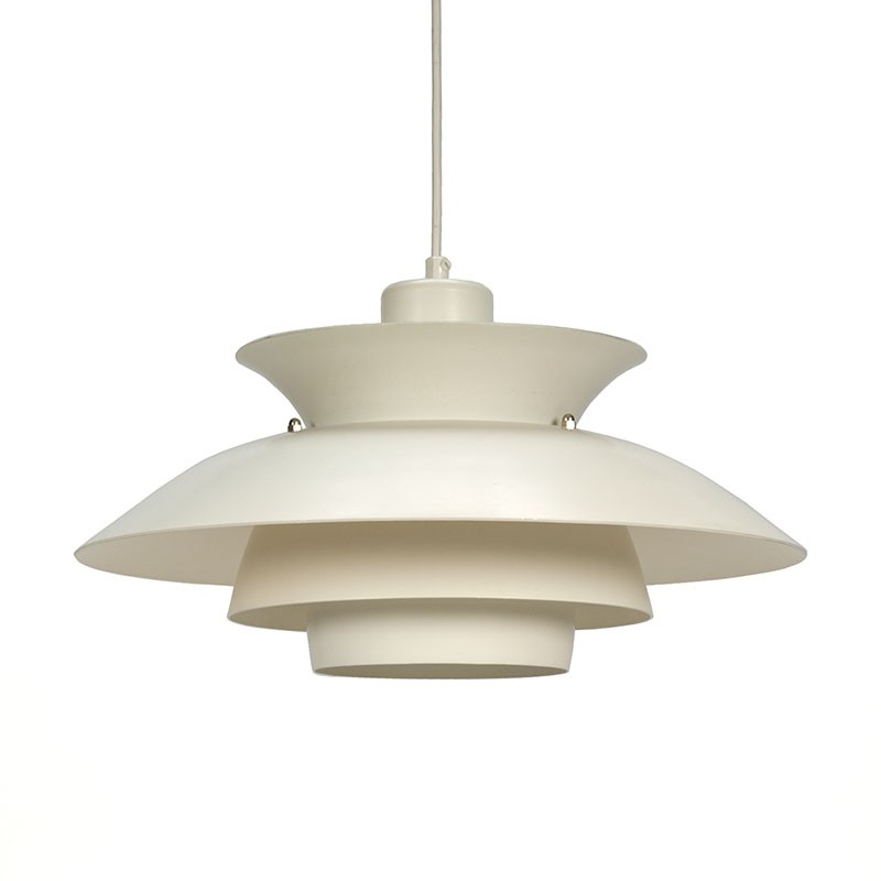 Vintage hanglamp uit Denemarken. De hanglamp is duidelijk ontworpen in de stijl van de PH serie van Poul Henningsen. De conditie is goed, zeer minimale gebruikssporen, zie de details. De afmetingen zijn 20 cm hoog en 35 cm in diameter.