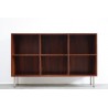 Vintage design boekenkast uit de zestiger jaren. De boekenkast is uitgevoerd in palissanderhout en is gemaakt in Scandinavie. De kast verkeert in een erg goede staat, onder de kast zitten rvs poten ( deze zijn nieuw). De afmeting van de kast is 148,5 cm L/ 33 cm B/ 95 cm H.