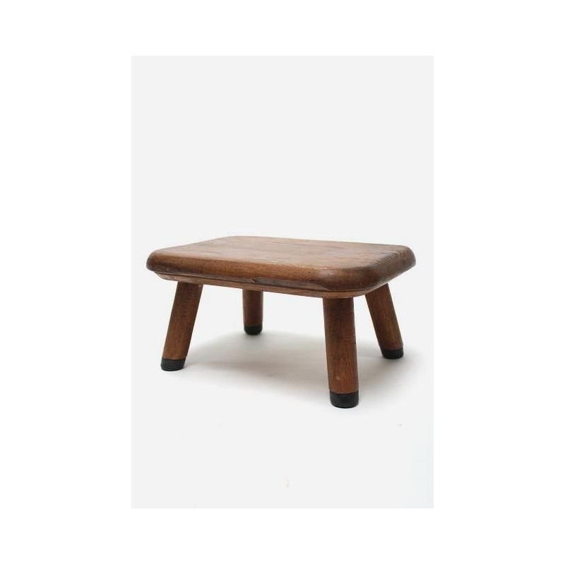 Vintage houten kruk, de stijl van het ontwerp doet denken aan die van de Franse ontwerpster Charlotte Perriand. De kruk is uitgevoerd in hout en heeft zwarte rubberen voetjes aan de onderzijde is de kruk gestempeld ( zie detailfoto's). De kruk is zeer laag, de afmeting is 30,5 cm L/ 22,5 cm B/ 15 cm H.