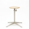 Draaibare kruk ontworpen door Friso Kramer in de jaren 50 en uitgebracht door Ahrend de Cirkel. De industriele kruk heeft een houten zitting en een grijs metalen onderstel. De kruk is in hoogte verstelbaar van 57cm tot maximaal 73,5 cm, de doorsnee van de zitting is 33,5 cm. De kruk verkeert in een goede staat, hier en daar zijn lichte gebruiksporen zichtbaar.